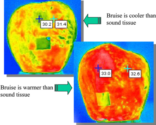 4.紅外熱像儀可以連續(xù)記錄溫度記錄圖,并且可以在傳送帶上進行估算,使用熱成像通過測量干燥期間柑橘類水果的溫度分布來模擬脫水動力學(xué)。這可用于確定最終干燥點,也可用于開發(fā)在線控制系統(tǒng)。紅外熱成像可以改善熱量消耗和水果質(zhì)量控制